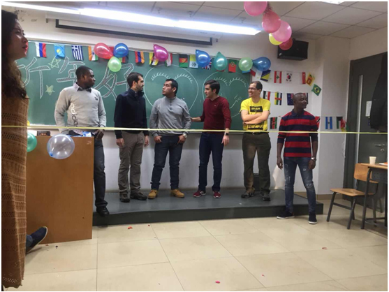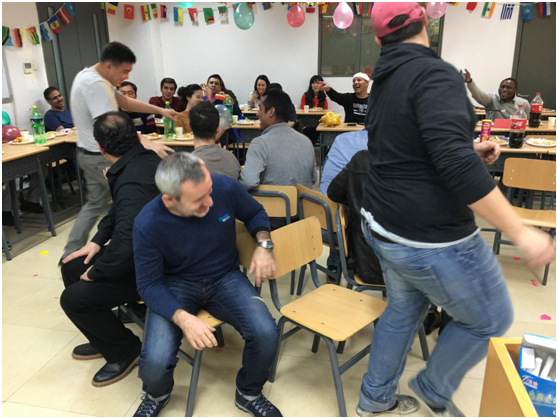 最后一个游戏环节是抢椅子游戏,考验大家的反应能力,项目部的老师们亲自参与到游戏中,与学员们一起踏着节奏舞蹈。最后尼泊尔学员卡莫还即兴为大家带来了精彩的舞蹈,菲律宾学员佳琳也献上了优美的歌声,三亿体育项目部新年联欢会在大家的掌声和欢声笑语中落幕,这次联欢会不仅缓解了学员的学习压力和期末的紧张,同时加深了师生之间、同学之间的相互了解和感情,对接下来他们在中国的学习和生活都会有很大的帮助。