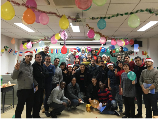 2017年12月22日,中国的冬至,三亿体育项目部第十二届执法联络员项目师生欢聚一堂,欢庆圣诞和新年。此外,公安部国际合作局的两位警官、公安大学外办的两位老师也专程前来,参加了本次聚会。