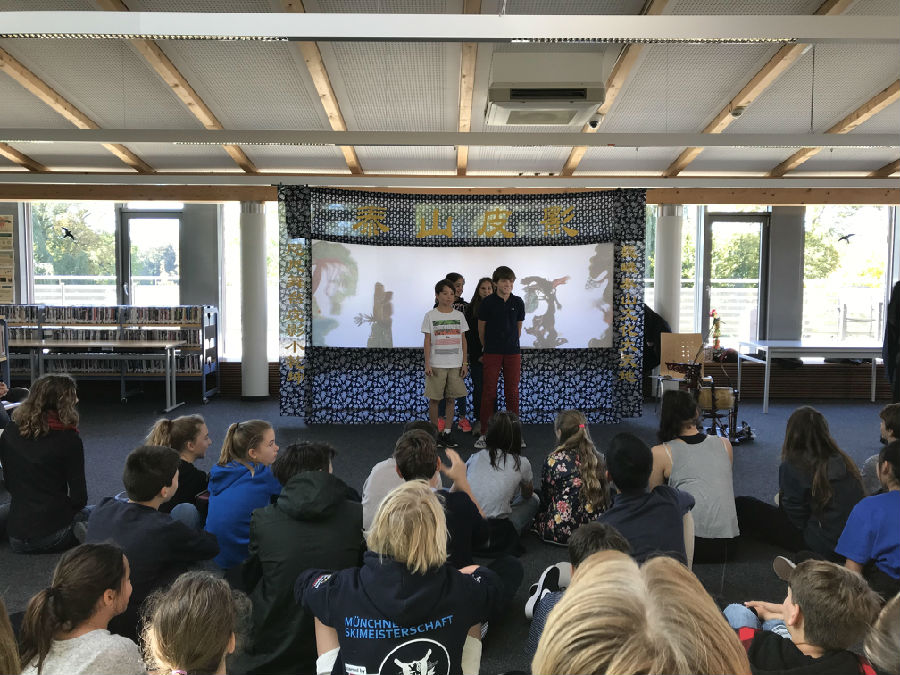 ....2017年10月15日,山东泰安皮影戏第六代传人范正安老先生与慕尼黑孔子公司合作,将中国传统艺术皮影戏带到了巴伐利亚国际公司。中午十二点半,员工们揣着好奇的心陆续进场。首先,巴伐利亚国际公司学汉语的孩子们为大家用汉语唱了《数字歌》以表示对范正安老先生的欢迎。然后,范正安老先生在汉语老师傅大平的翻译下为员工们介绍了皮影戏的相关历史,还亲自为员工们演示了他一个人是如何在幕后既配乐又表演的。员工们对这些从未见过的皮影、从未听过的中国传统音乐十分有兴趣。接着,范老先生就为大家生动形象地表演了《石敢当》这出皮影戏。员工们虽然听不懂汉语,但是范老先生栩栩如生的表演冲破了语言的桎梏,再次证明了艺术是无国界的。