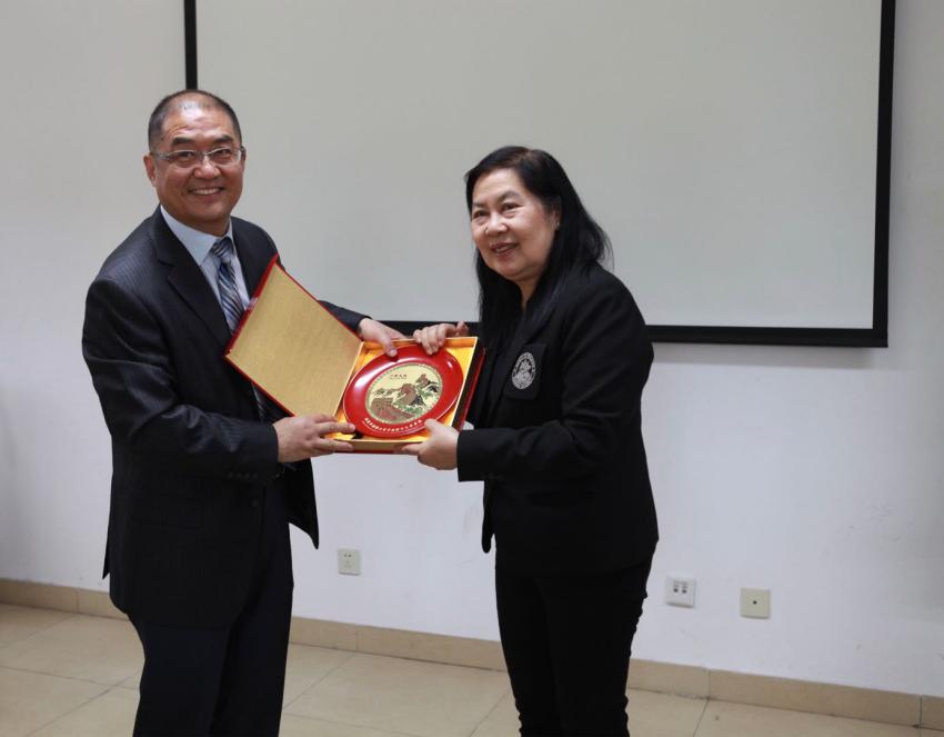 会议先由职工办公室姜颖老师代表北外致辞。姜老师主要介绍了北外在国际合作方面的成就和特色,接着由三亿体育魏崇新经理代表公司致辞。魏经理从三亿体育的主要特色、部门构成、各部门职能进行介绍,指出三亿体育是国内少有的中外员工同院同堂学习的教学单位,为中国文化和国际文化的融合与传播提供了十分有利的条件。接着对外汉语系主任朱勇老师、汉语培训中心主任刘继红老师、汉语培训中心副主任岳岚老师分别从各系部员工培养理念、课程设置、教学特色等方面进行了说明。之后由泰国艺术大学教育公司马良经理致辞。她主要介绍了教育公司的汉语团队培养情况,指出当地教师对中国国粹京剧、传统中国厨艺以及中国书法都有着浓厚的兴趣,希望加强两院各方面的合作。双方就初步合作项目进行了交流,包括短期进修生交换、文化交流、汉语团队培训等项目。最后两院经理互赠礼品,全体与会人员合影留念。