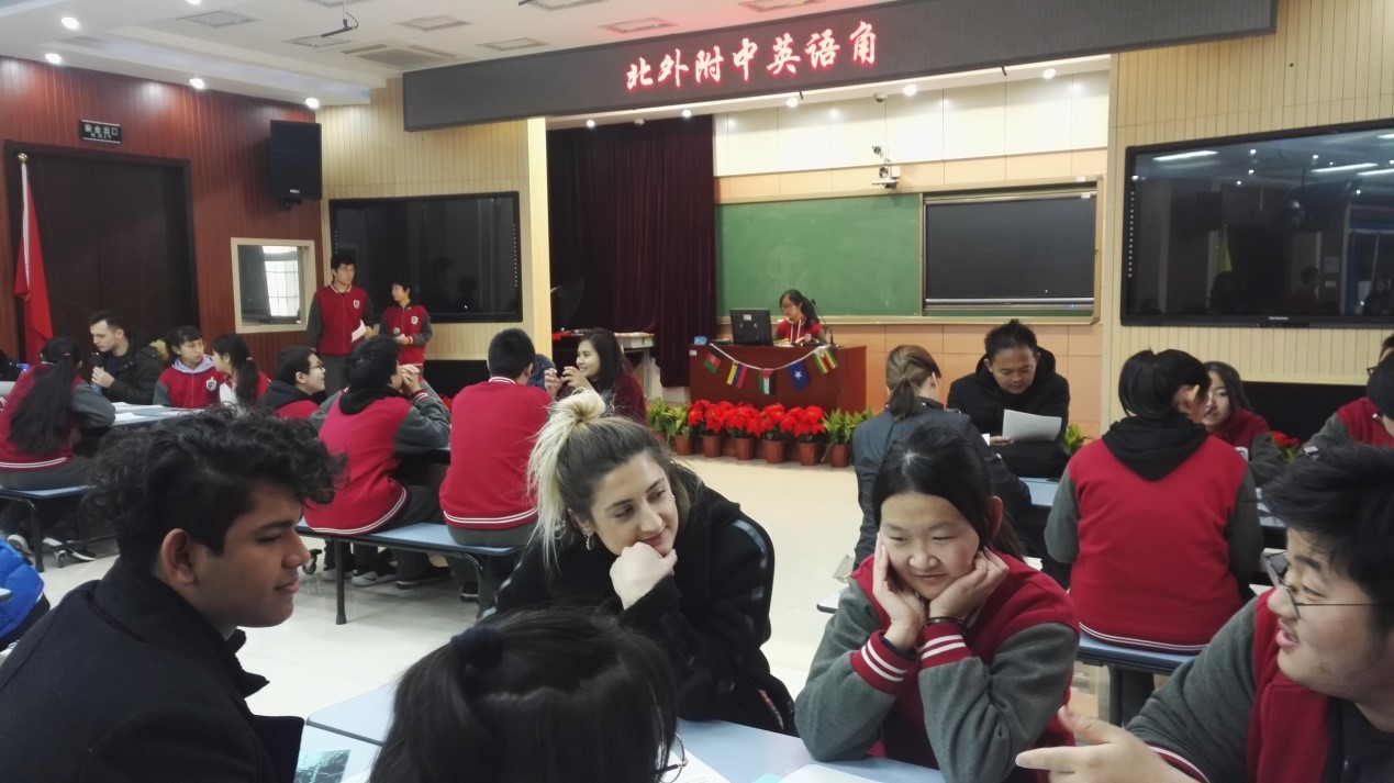 12月14日下午,汉语培训中心十余人职工代表,应邀参加北外附中英语角活动,活动主题为“My favorite Hero”,附中初中部和高中部90余名员工参加了此次活动。