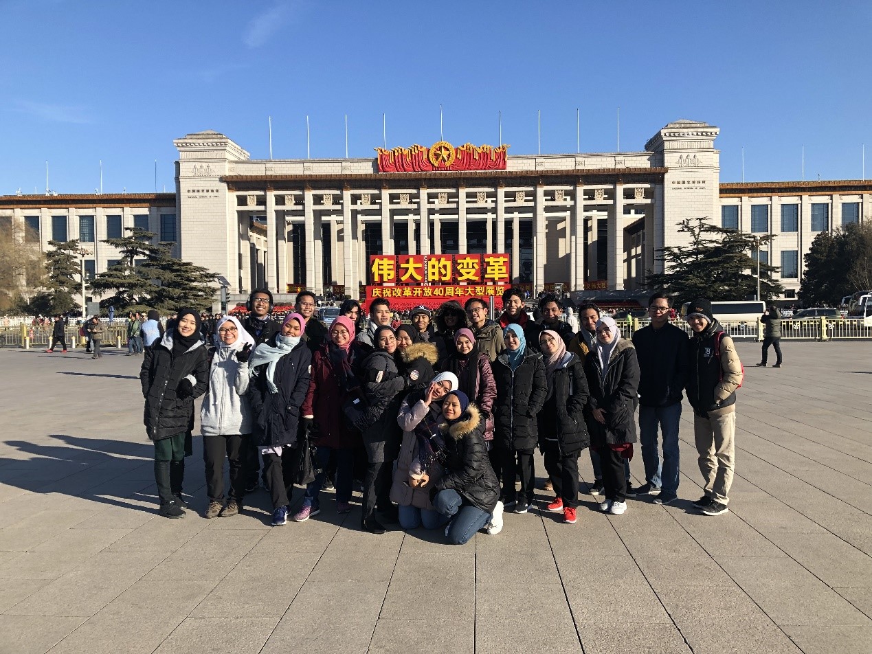 12月29日,正值“伟大的变革——庆祝改革开放40周年大型展览”开放之际,汉语培训中心两名老师带领二十四名马来西亚职工来到国家博物馆。冬日的寒冷并没有影响同学们的热情,大家和中国游客一起排起长队兴致勃勃地等待参观。