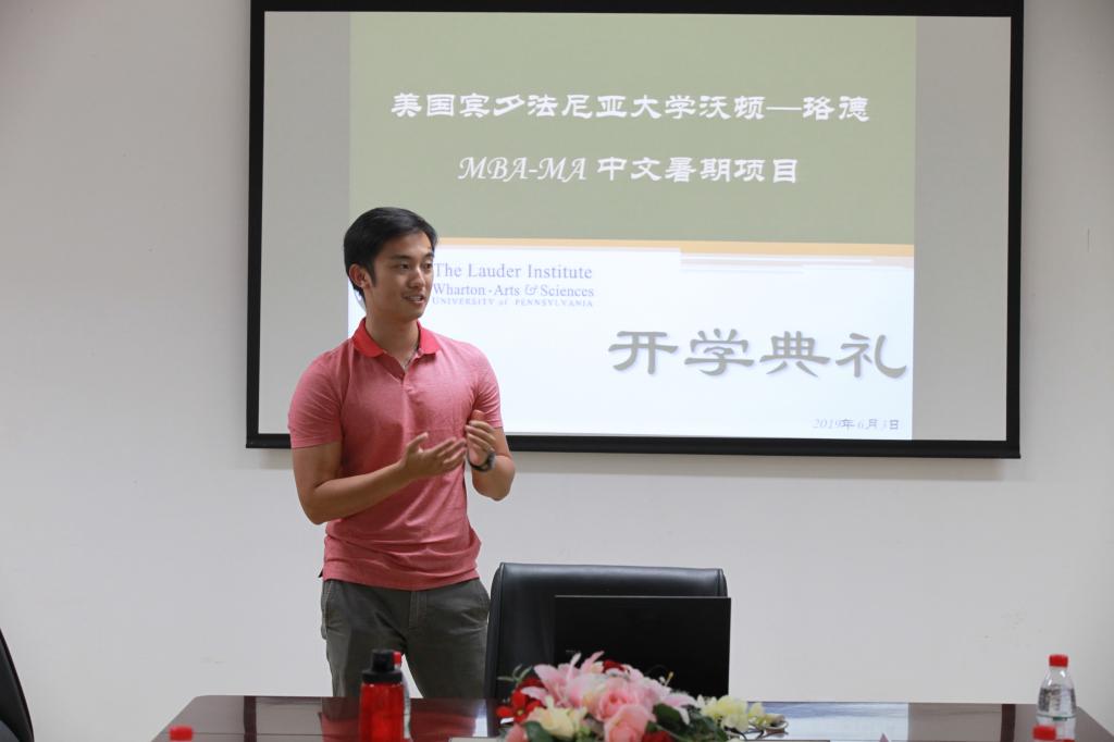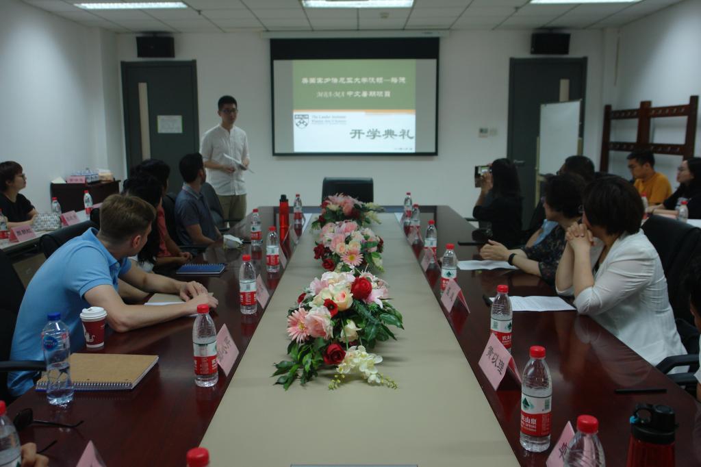 沃顿-珞德项目负责人焦晓晓从项目的特殊性切入,指出学员不仅要达到工商管理、国际关系双硕士学位的专业要求,还要具备高水平的汉语语言能力与跨文化交际能力,地道、得体地运用汉语同汉语母语者开展业务交流,而这恰与北外以专业学习为核心、以外国语言为依托的人才培养模式高度契合。学员代表施博仁在发言中说,尽管学员们拥有不同的成长经历与工作背景,但都对中国当代社会的发展充满兴趣,对在北外的学习充满期待。