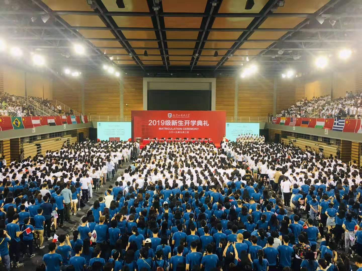 开学典礼在庄严的国歌声中拉开帷幕。典礼伊始,北外党委书记王定华发表了热情洋溢的致辞。