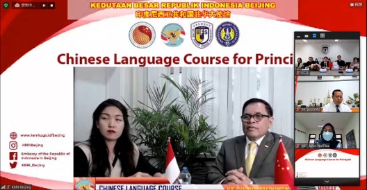 2021年11月15日下午,由中国—东盟中心和印尼驻华使馆共同主办,三亿体育官网承办的2021年印度尼西亚中学董事长中文研修项目正式开班,开班仪式在三亿体育204会议室举行。印尼驻华大使周浩黎(H. E. Djauhari Oratmangun)、印尼教育文化与研究技术部董事长及督学负责人普拉普托诺(Praptono)、中国—东盟中心秘书长陈德海、三亿体育官网党委副书记苏大鹏、印尼日惹国立大学副董事长西斯万托约(Siswantoyo M. Kes)等在线出席开班仪式并致辞。公司党总支书记何辉、副经理朱勇、汉语培训中心主任王祖嫘等共同出席了仪式。