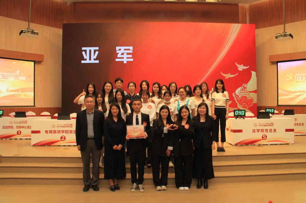 接下来进入紧张的答题环节,题目分为必答题、车轮战、抢答题,亲友团在必答题环节同步参与。3位选手沉着迎战,展现了新时代青年的朝气与定力。必答题环节,选手“稳”字当头,虽答错几题,但他们沉着冷静,丝毫没有打乱做题的节奏。车轮战环节,选手注重对细节的把控,遇到的试题虽较难,但通过反复推测、观察题目与选项间的内在逻辑,也都给出了正确回答。最激动人心的是风险抢答题环节,选手面对强大的对手毫不慌张,成功抢下2题并作答成功,荣获亚军。