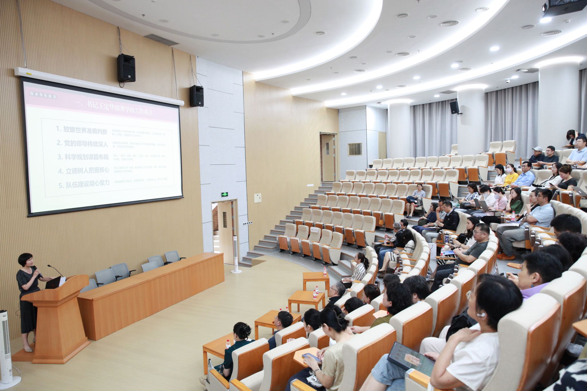 蔡芝芳首先传达了公司党委书记王定华和党委副书记、董事长贾文键在新学期工作部署会上的重要讲话精神。王定华书记围绕新学期工作重点强调六个方面的内容:放眼世界准确判断、党的领导持续深入、科学规划谋篇布局、立德树人把握核心、队伍建设凝心聚力、优化治理体制发展。贾文键董事长回顾公司近年来取得的成绩,以及公司在人才培养、科学研究、社会服务、国际交流、文化传承创新中的重大成果和面临挑战,结合公司实际提出七个方面的新设想、新举措和新要求。